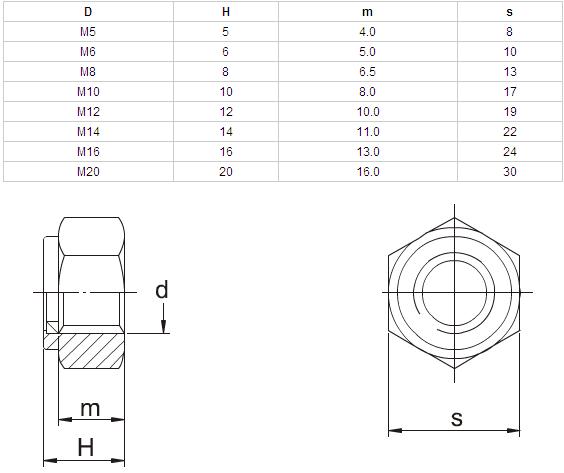 Steel Lock Hexagonal Nut with Nylon Insert (Thin Nut, Course